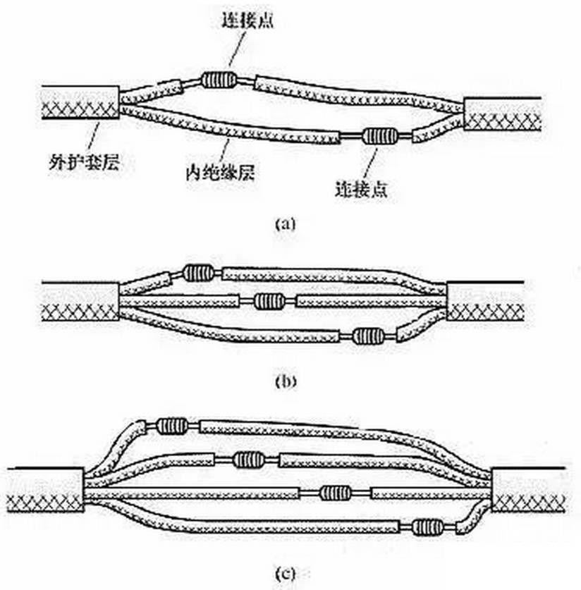 為了進(jìn)行連接,導(dǎo)線連接處的絕緣層已被去除。導(dǎo)線連接完成后,必須對所有絕緣層已被去除的部位進(jìn)行絕緣處理,以恢復(fù)導(dǎo)線的絕緣性能,恢復(fù)后的絕緣強(qiáng)度應(yīng)不低于導(dǎo)線原有的絕緣強(qiáng)度。
